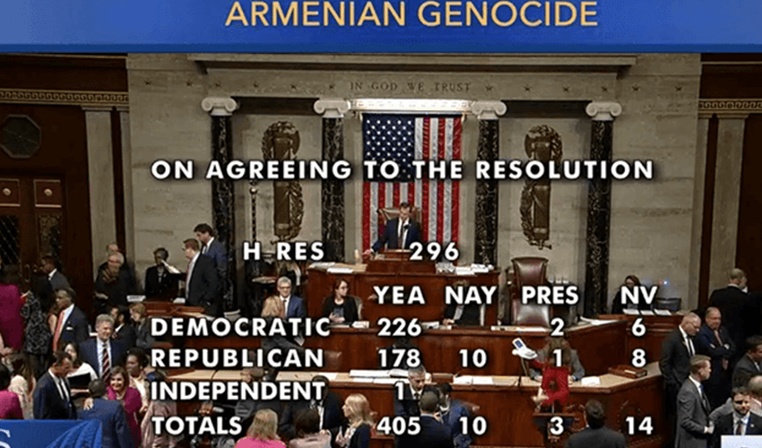 ԱՄՆ Կոնգրեսի ներկայացուցիչների պալատում հոկտեմբերի 29-ին կայացած քվեարկության արդյունքում ձայների մեծամասնությամբ ընդունվեց Հայոց ցեղասպանությունը ճանաչող բանաձևը։