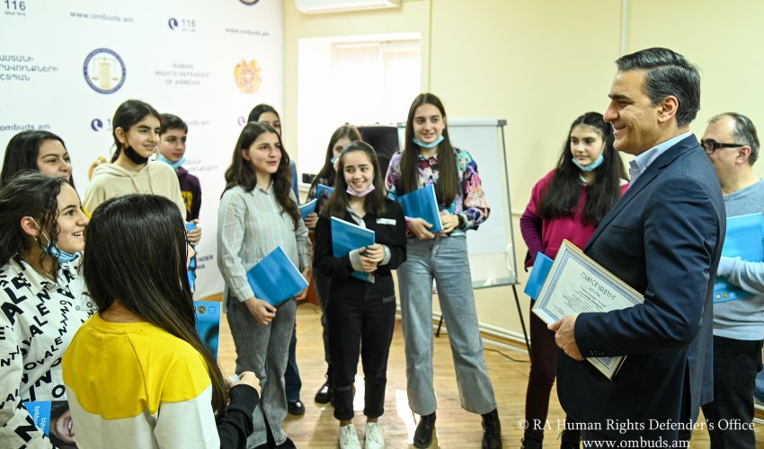 Մարդու իրավունքների պաշտպանը երեխաներին ներկայացրել է աշխատակազմի գործունեությունը երեխաների իրավունքների պաշտպանության ուղղությամբ, խոսել children.ombuds.am կայքի մասին, որը հնարավորություն է տալիս երեխաներին, ուսուցիչներին ու ծնողներին ծանոթանալ երեխաների իրավունքներին, համացանցից անվտանգ օգտվելու կանոններին և այլն: