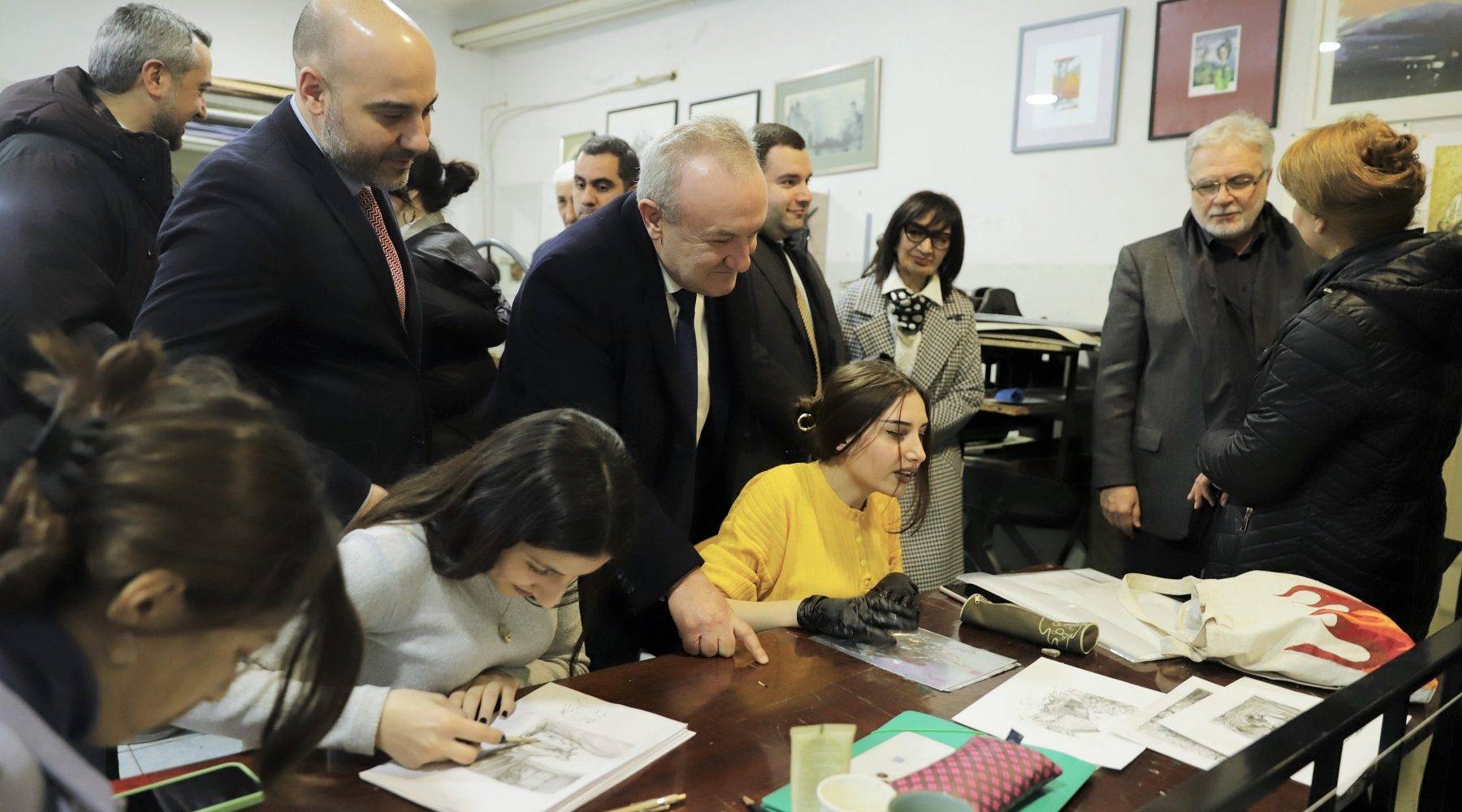 Նախարարը շրջել է բուհի ուսումնական լաբորատորիաներում, ծանոթացել կրթական գործընթացին: Այնուհետև Վահրամ Դումանյանն աշխատանքային հանդիպում է ունեցել Հայաստանի գեղարվեստի ակադեմիայի Հոգաբարձուների խորհրդի, պրոֆեսորադասախոսական անձնակազմի, վարչական ղեկավարության ներկայացուցիչների հետ: