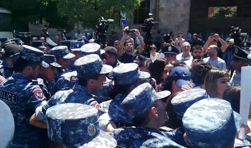 Երիտասարդների մի մասը փակեց դեպի Նալբանդյան փողոց տանող խաչմերուկը, ոստիկանները հորդորեցին նրանց բացել ճանապարհը և չխանգարել տրանսպորտային միջոցների երթևեկությանը, հակառակ դեպքում կկիրառվեն օրենսդրությամբ սահմանված հարկադրանքի միջոցներ: Ոստիկանները մի քանի րոպե հետո սկսեց բերման ենթարկել նաև փողոցը փակածներին: