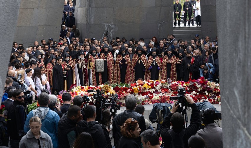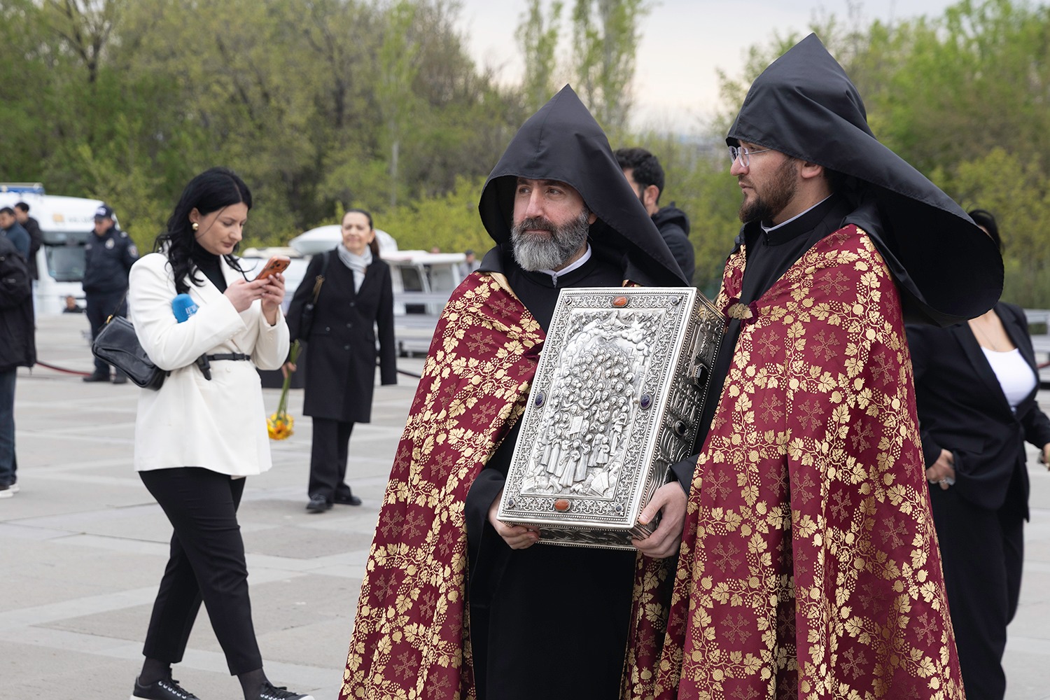 Օրվա առիթով Ծիծեռնակաբերդի հուշահամալիր էր բերվել նաև Հայոց ցեղասպանության սրբոց նահատակաց մասունքարանը: