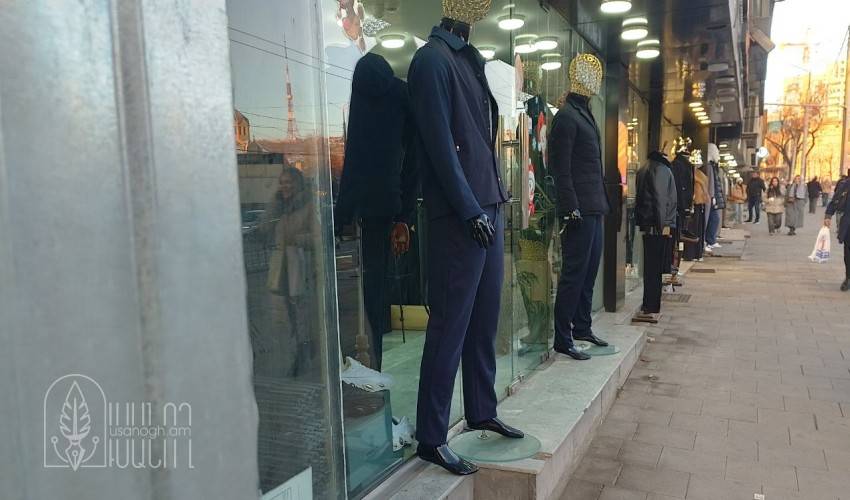 Մանեկեններ Ագաթանգեղոսի փողոցի խանութներից մեկի դիմաց (Երեւան)
