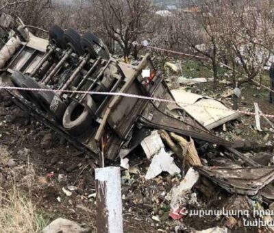 Ուշի գյուղի ոլորաններում բեռնատար է շրջվել. վարորդը տեղում մահացել է